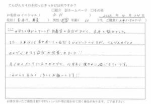 肩こり・首の痛みで通われている方(30代女性)がいらっしゃいます。 毎回、肩と首の症状が和らぎ、喜んでいただいています。 この方は、アクティベータで体の施術の他に、メンタル系の施術も受けられています。てんびんカイロでは全 […]